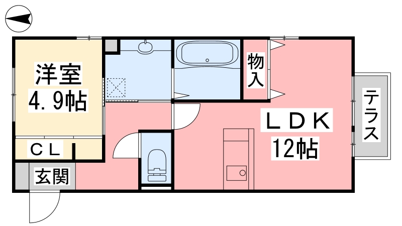 | 間取り詳細 | LDK 12畳 、 洋室 4.9畳 |