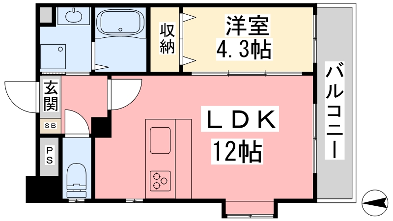 | 間取り詳細 | LDK 12畳 、 洋室 4.3畳 |