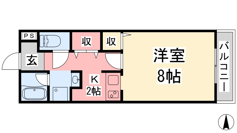 | 間取り詳細 | K 2畳 、 洋室 8畳 |