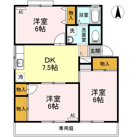 | 間取り詳細 | DK 7.5畳 、 洋室 6畳 、 洋室 6畳 、 洋室 6畳 |