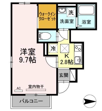 | 間取り詳細 | K 2.8畳 、 洋室 9.7畳 |