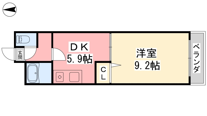 | 間取り詳細 | 洋室 9.2畳 、 DK 5.9畳 |
