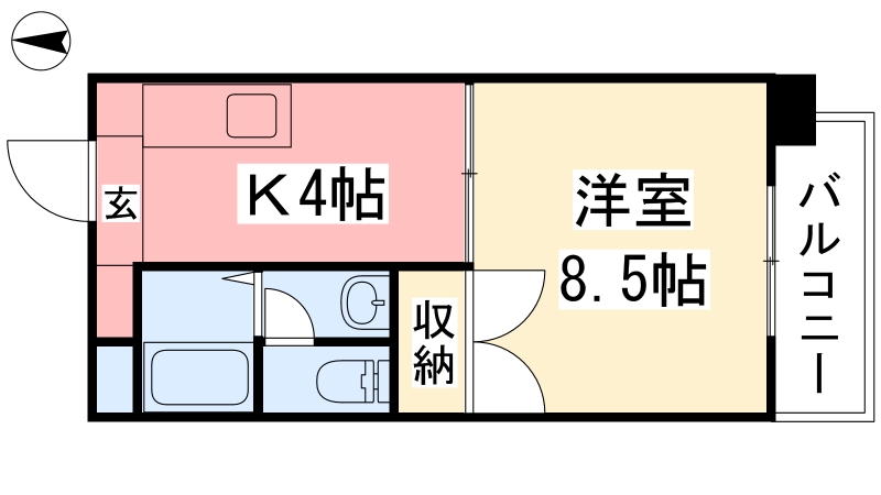 | 間取り詳細 | K 4畳 、 洋室 8.5畳 |