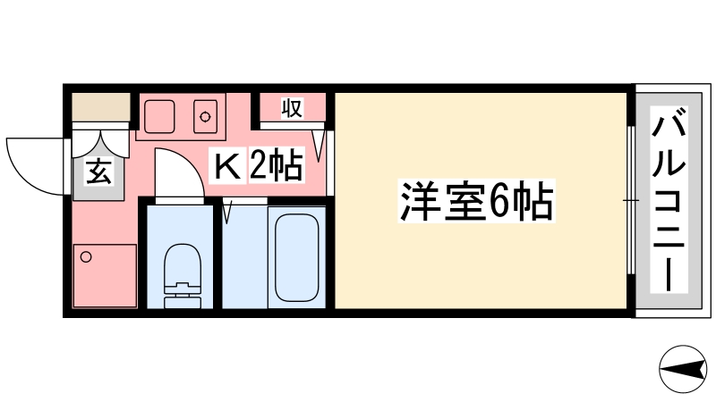 | 間取り詳細 | 洋室 6畳 、 K 2畳 |