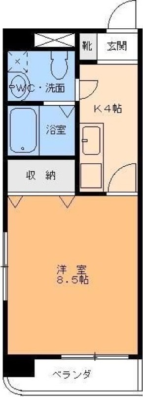 | 間取り詳細 | 洋室 8.5畳 、 K 4畳 |