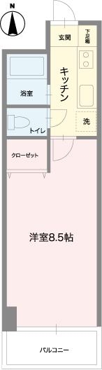 | 1K | 洋室 8.5畳 | 23.22㎡ |