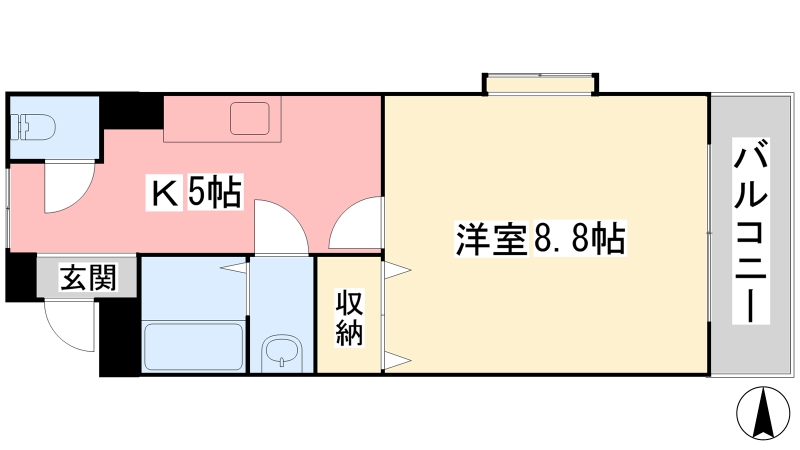 | 間取り詳細 | K 5畳 、 洋室 8.8畳 |