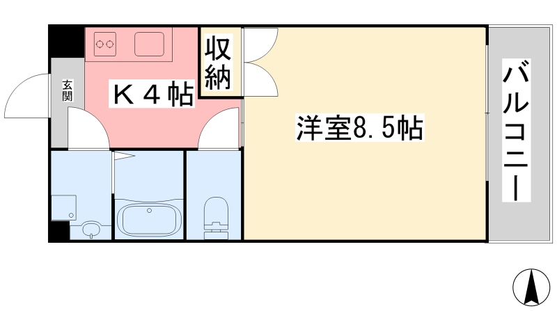 | 間取り詳細 | K 4畳 、 洋室 8.5畳 |