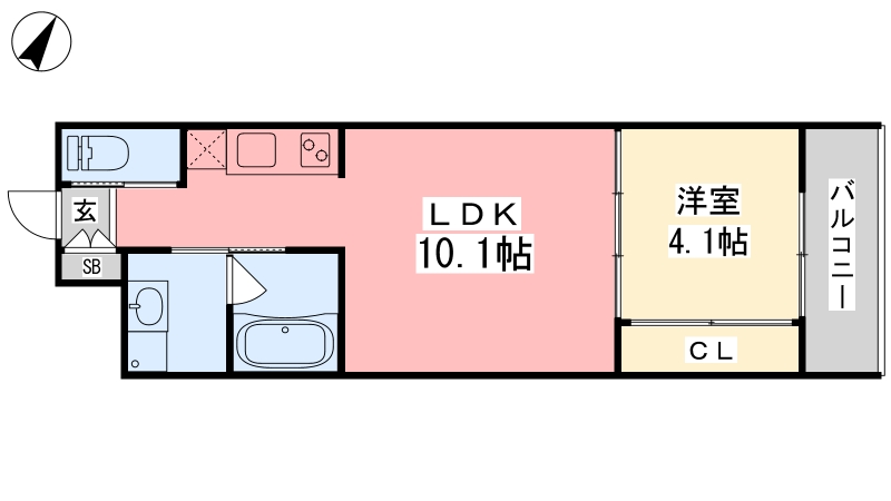 | 間取り詳細 | LDK 10.1畳 、 洋室 4.1畳 |