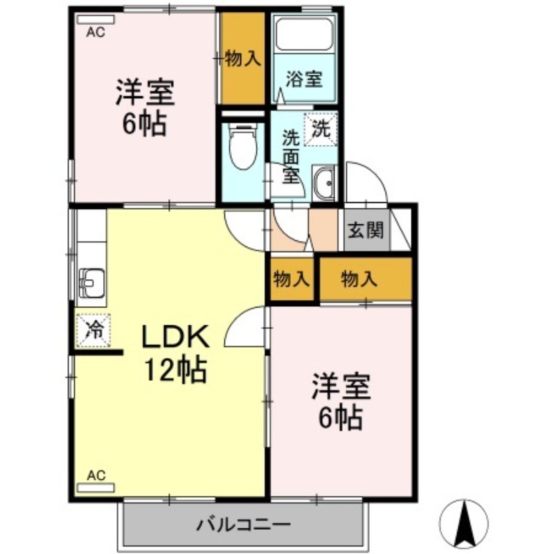 | 間取り詳細 | 洋室 6畳 、 洋室 6畳 、 LDK 12畳 |
