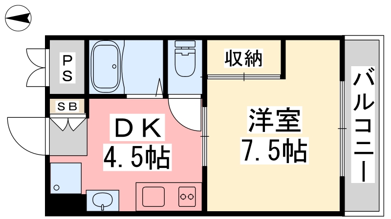 | 間取り詳細 | DK 4.5畳 、 洋室 7.5畳 |