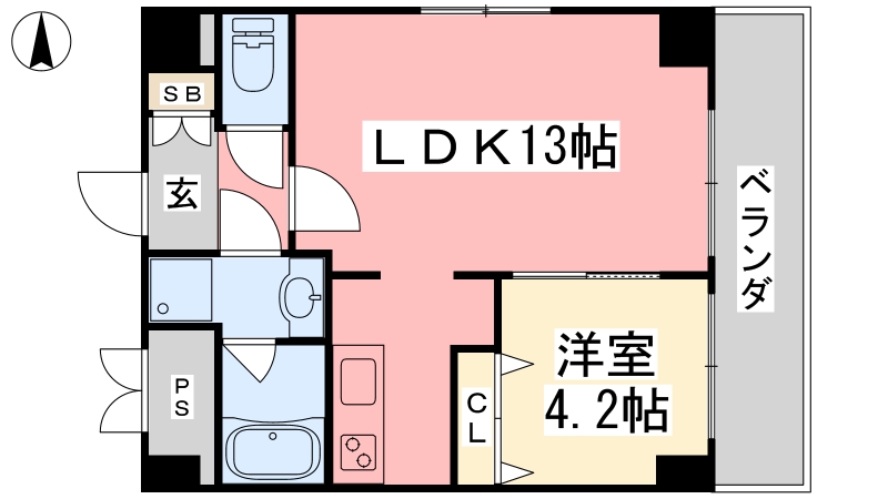 | 間取り詳細 | LDK 13畳 、 洋室 4.2畳 |