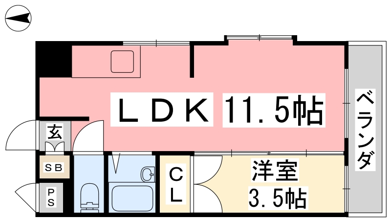 | 間取り詳細 | DK 11.5畳 、 洋室 3.5畳 |