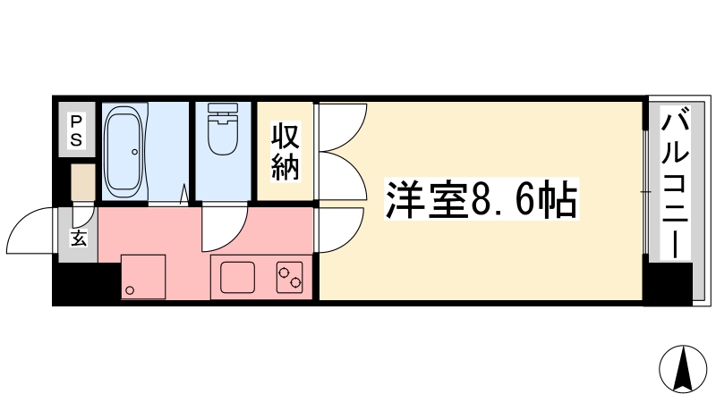 | 間取り詳細 | K 3畳 、 洋室 8.6畳 |