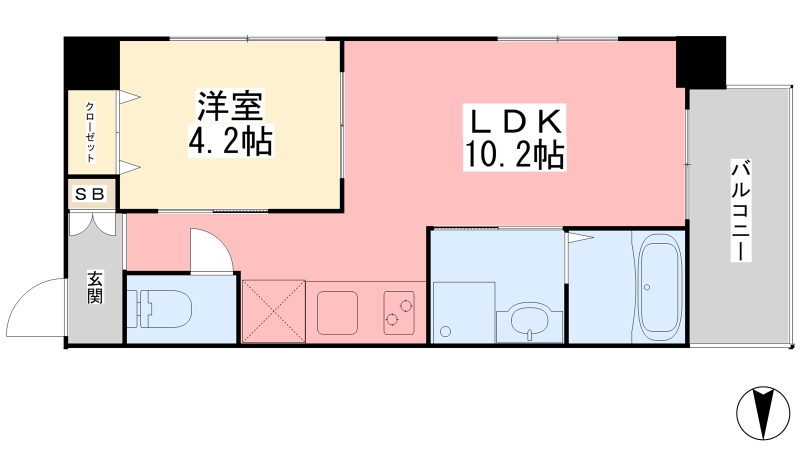 | 間取り詳細 | LDK 10.2畳 、 洋室 4.2畳 |