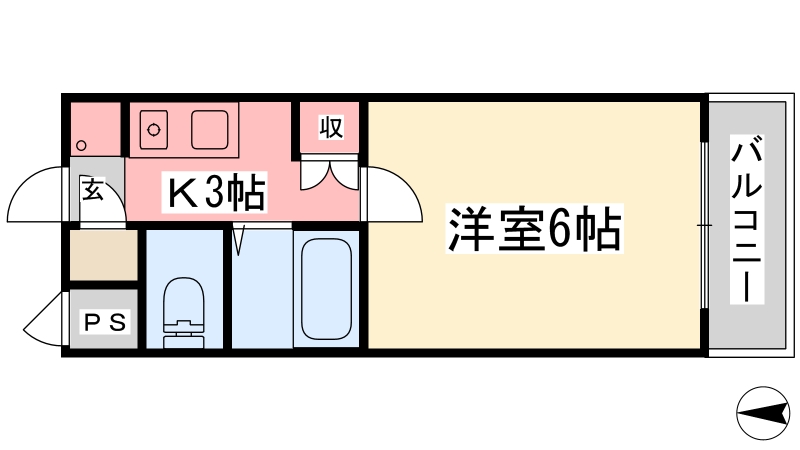 | 間取り詳細 | K 3畳 、 洋室 6畳 |