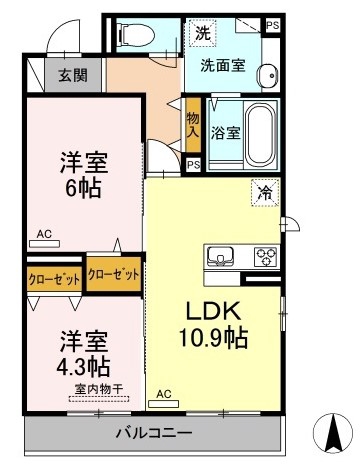 | 間取り詳細 | LDK 10.9畳 、 洋室 6畳 、 洋室 4.3畳 |