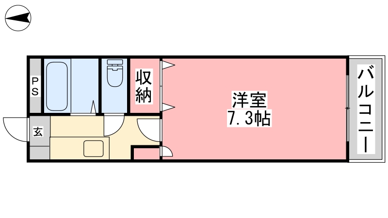 | 間取り詳細 | K 2畳 、 洋室 7.3畳 |