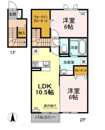 | 間取り詳細 | LDK 10.5畳 、 洋室 6畳 、 洋室 6畳 |