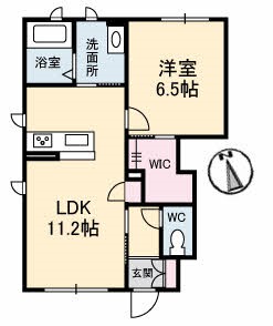 | 間取り詳細 | LDK 11.2畳 、 洋室 6.5畳 |