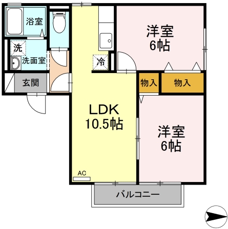 | 間取り詳細 | LDK 10.5畳 、 洋室 6畳 、 洋室 6畳 |