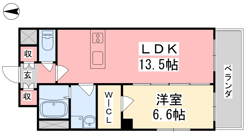 | 間取り詳細 | LDK 13.5畳 、 洋室 6.6畳 |