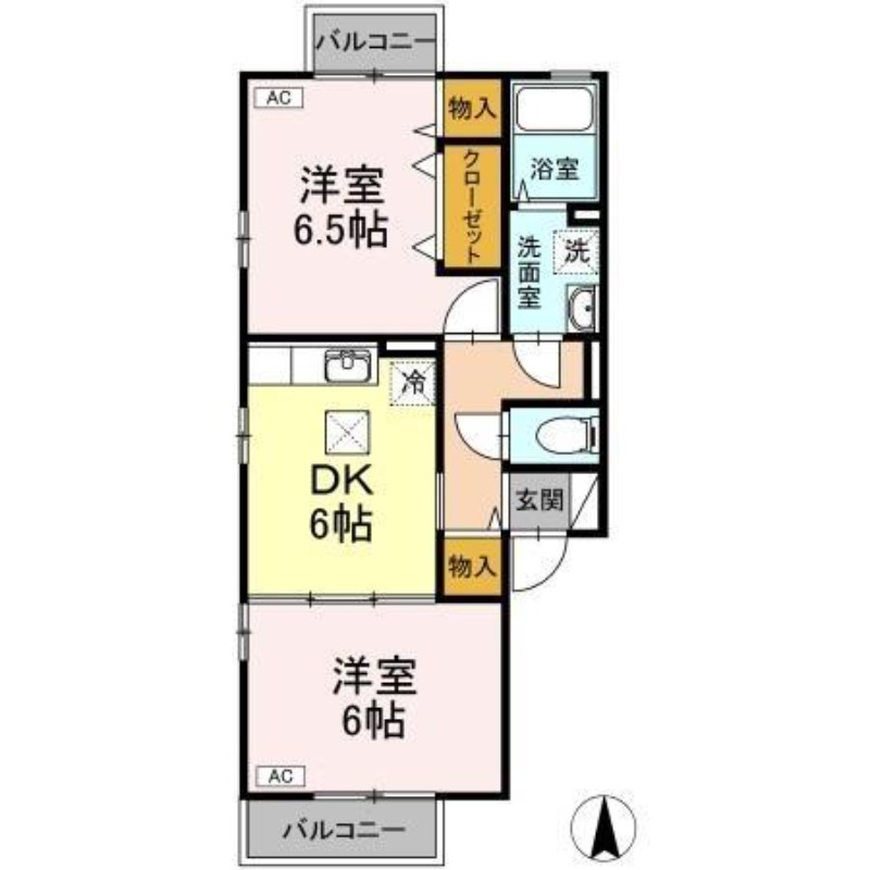 | 間取り詳細 | 洋室 6畳 、 洋室 6.5畳 、 DK 6畳 |