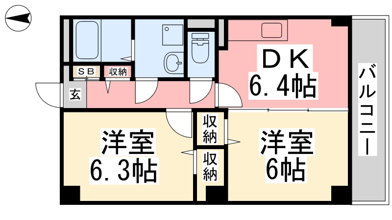| 間取り詳細 | DK 6.4畳 、 洋室 6.3畳 、 洋室 6畳 |