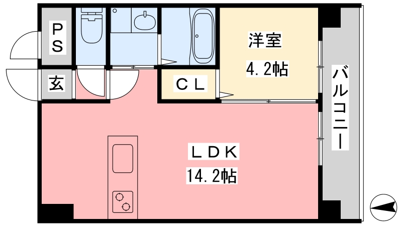 | 間取り詳細 | LDK 14.2畳 、 洋室 4.2畳 |