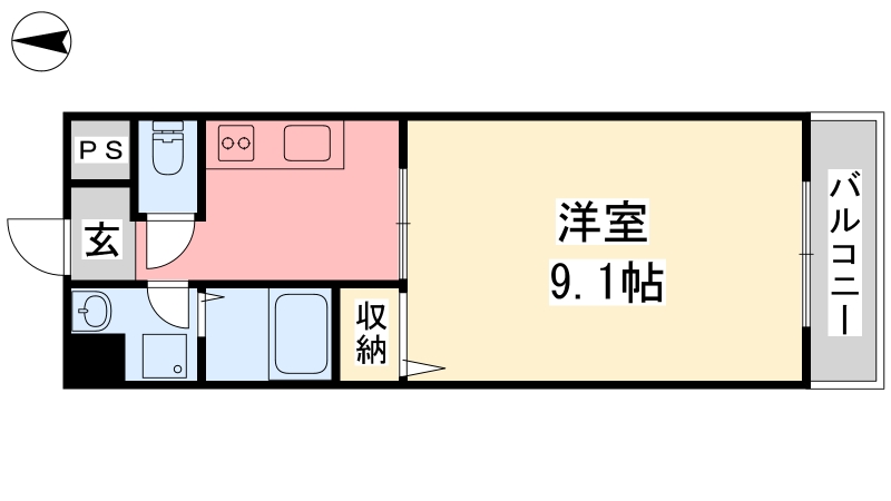 | 間取り詳細 | 洋室 9.1畳 、 K 3畳 |
