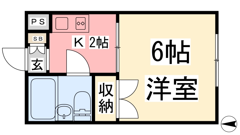 | 間取り詳細 | K 2畳 、 洋室 6畳 |