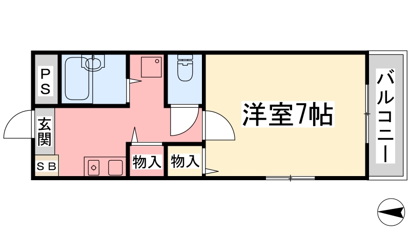 | 1K | 洋室 7畳 | 25.1㎡ |