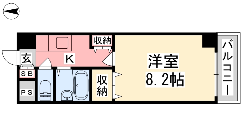 | 間取り詳細 | K 3畳 、 洋室 8.2畳 |