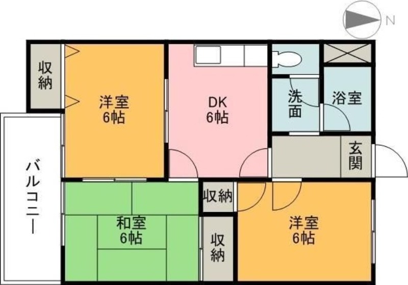 | 間取り詳細 | DK 6畳 、 和室 6畳 、 洋室 6畳 、 洋室 6畳 |