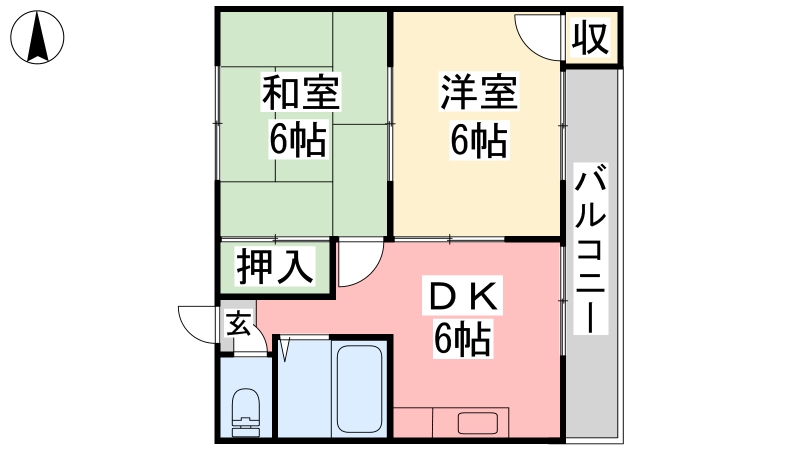 間取り詳細 | DK 6畳 、 洋室 6畳 、 和室 6畳 |
