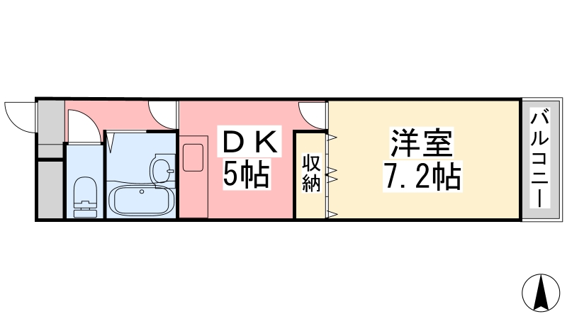 | 間取り詳細 | DK 5畳 、 洋室 7.2畳 |