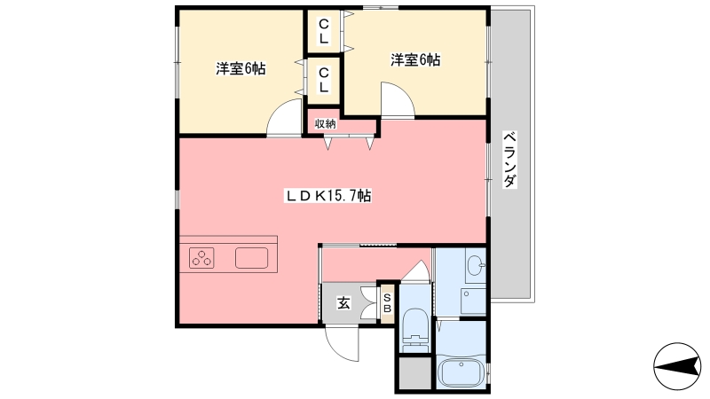 | 間取り詳細 | LDK 15.7畳 、 洋室 6畳 、 洋室 6畳 |