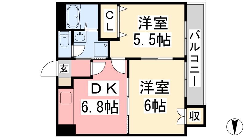 間取り詳細 | DK 6.8畳 、 洋室 6畳 、 洋室 5.5畳 |