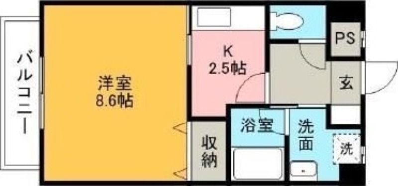| 間取り詳細 | K 2.5畳 、 洋室 8.6畳 |