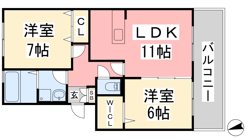 | 間取り詳細 | LDK 11畳 、 洋室 7畳 、 洋室 6畳 |