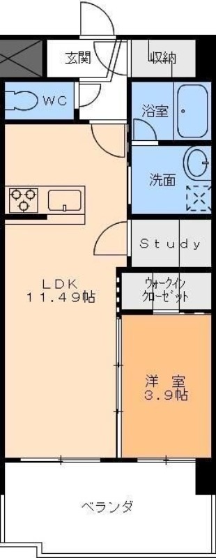 | 間取り詳細 | 洋室 3.9畳 、 LDK 11.49畳 |