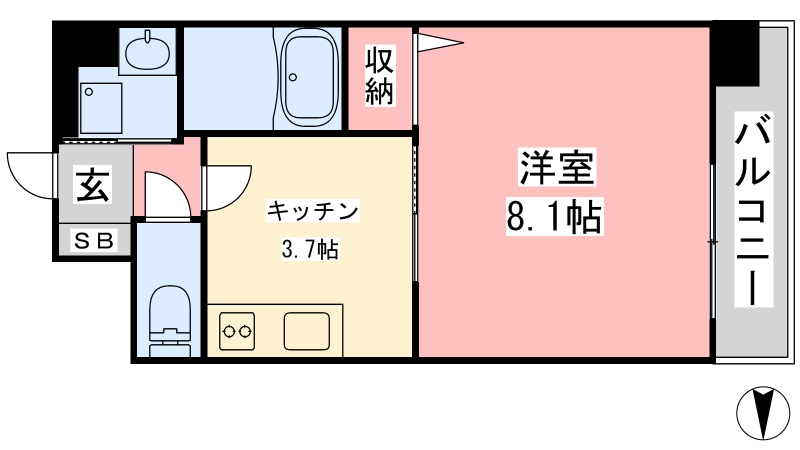 | 間取り詳細 | 洋室 8.1畳 、 K 3.7畳 |
