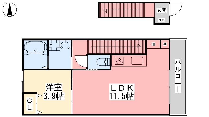| 間取り詳細 | LDK 11.5畳 、 洋室 3.9畳 |