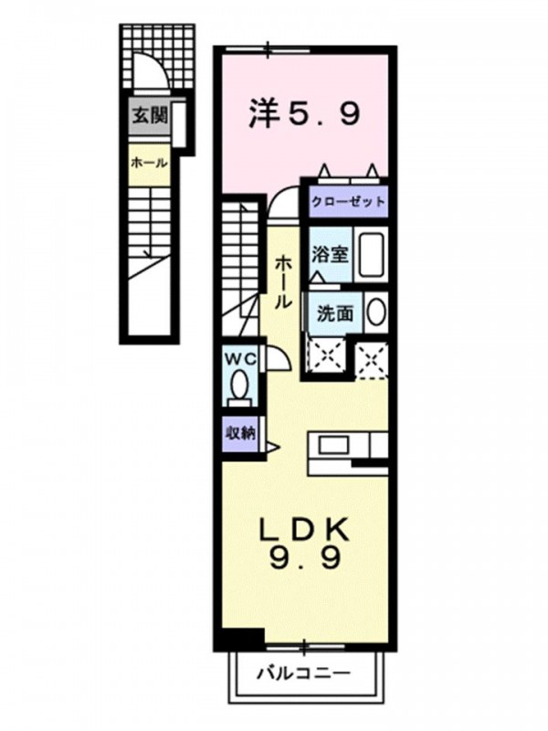 | 間取り詳細 | 洋室 5.9畳 、 LDK 9.9畳 |