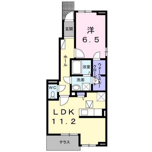 | 間取り詳細 | 洋室 6.5畳 、 LDK 11.2畳 |