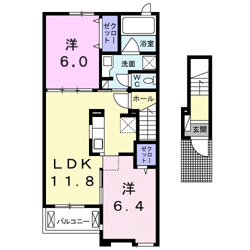 | 間取り詳細 | 洋室 6畳 、 洋室 6.4畳 、 LDK 11.8畳 |