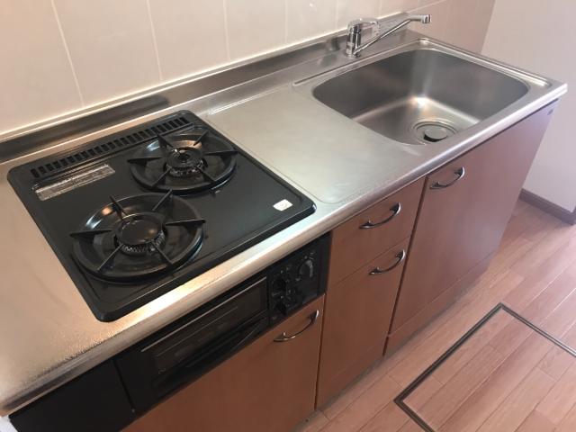 1階角部屋です。洗面化粧台、浴室換気乾燥機、ガスコンロ付の物件です。
