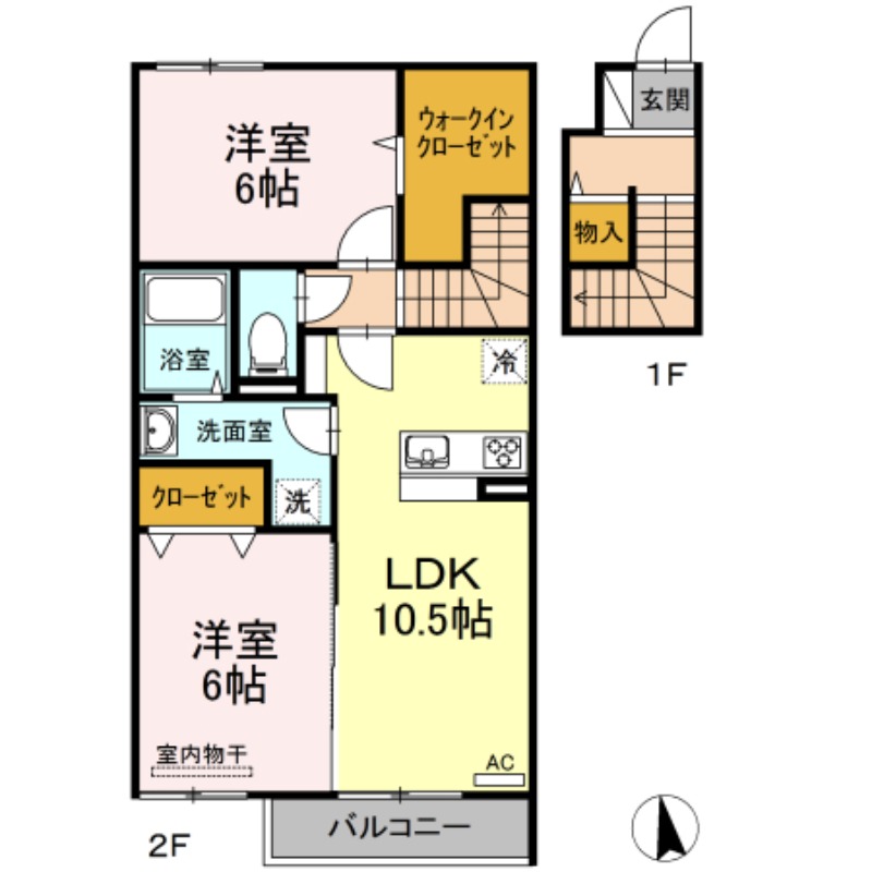 | 間取り詳細 | LDK 10.5畳 、 洋室 6畳 、 洋室 6畳 |