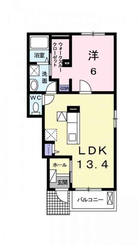 | 間取り詳細 | 洋室 6畳 、 LDK 13.4畳 |
