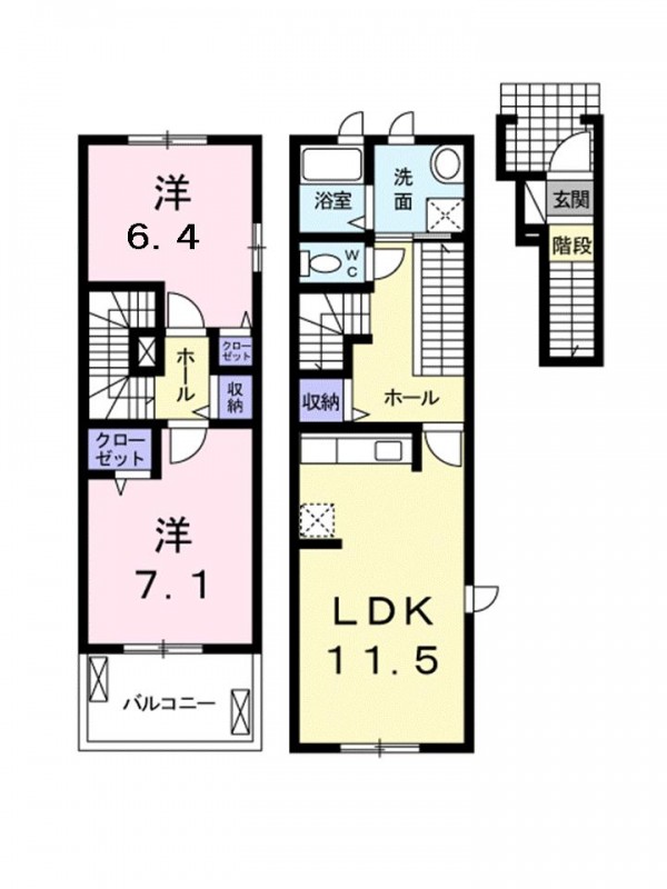 | 間取り詳細 | 洋室 6.4畳 、 洋室 7.1畳 、 LDK 11.5畳 |